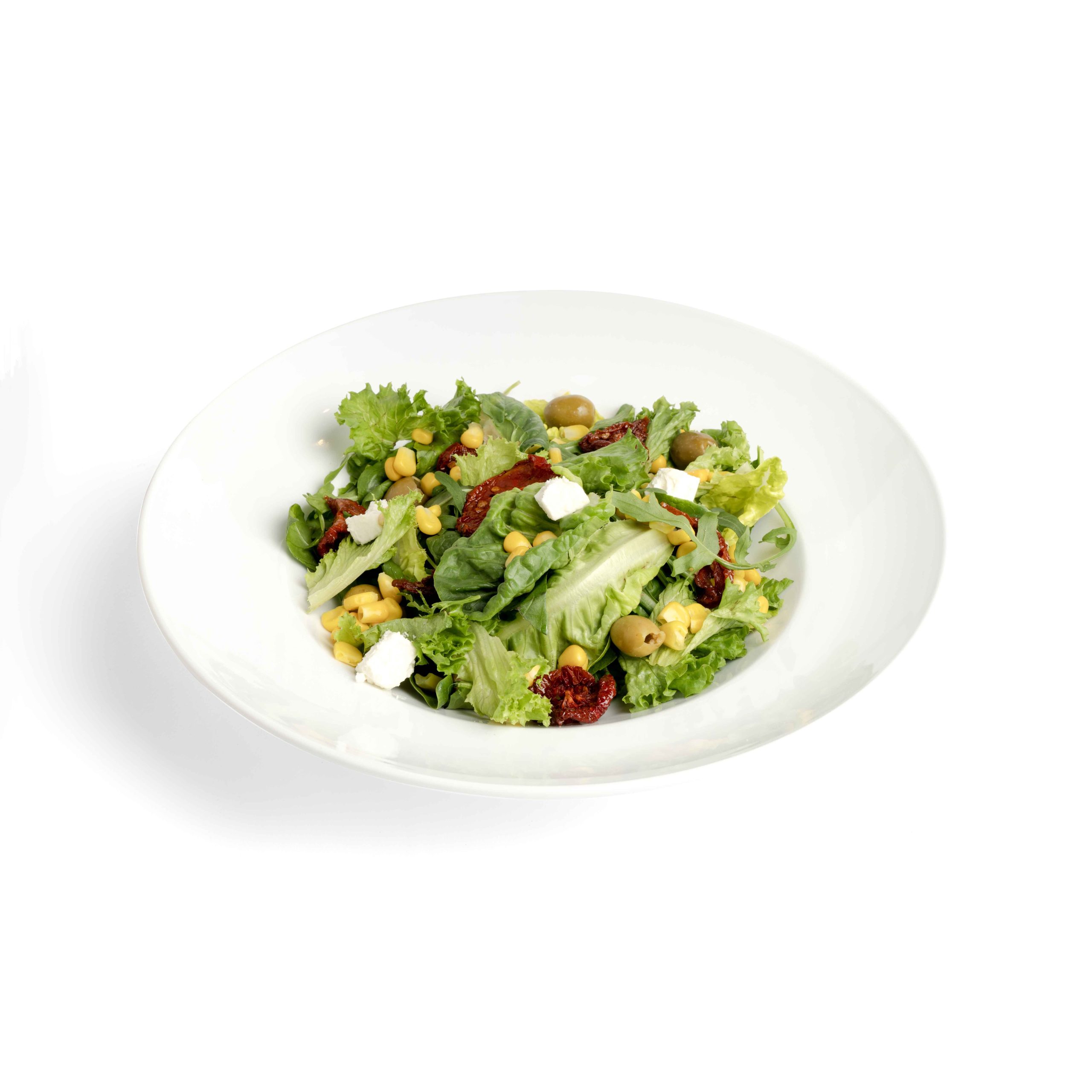 میکس سبزیجات، ریحان ایتالیایی، زیتون،  گوجه خشک، ذرت، پنیر فتا