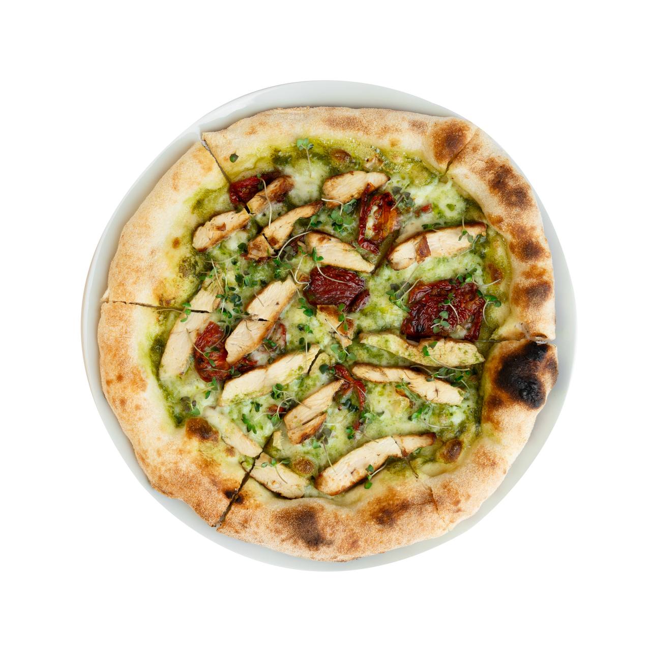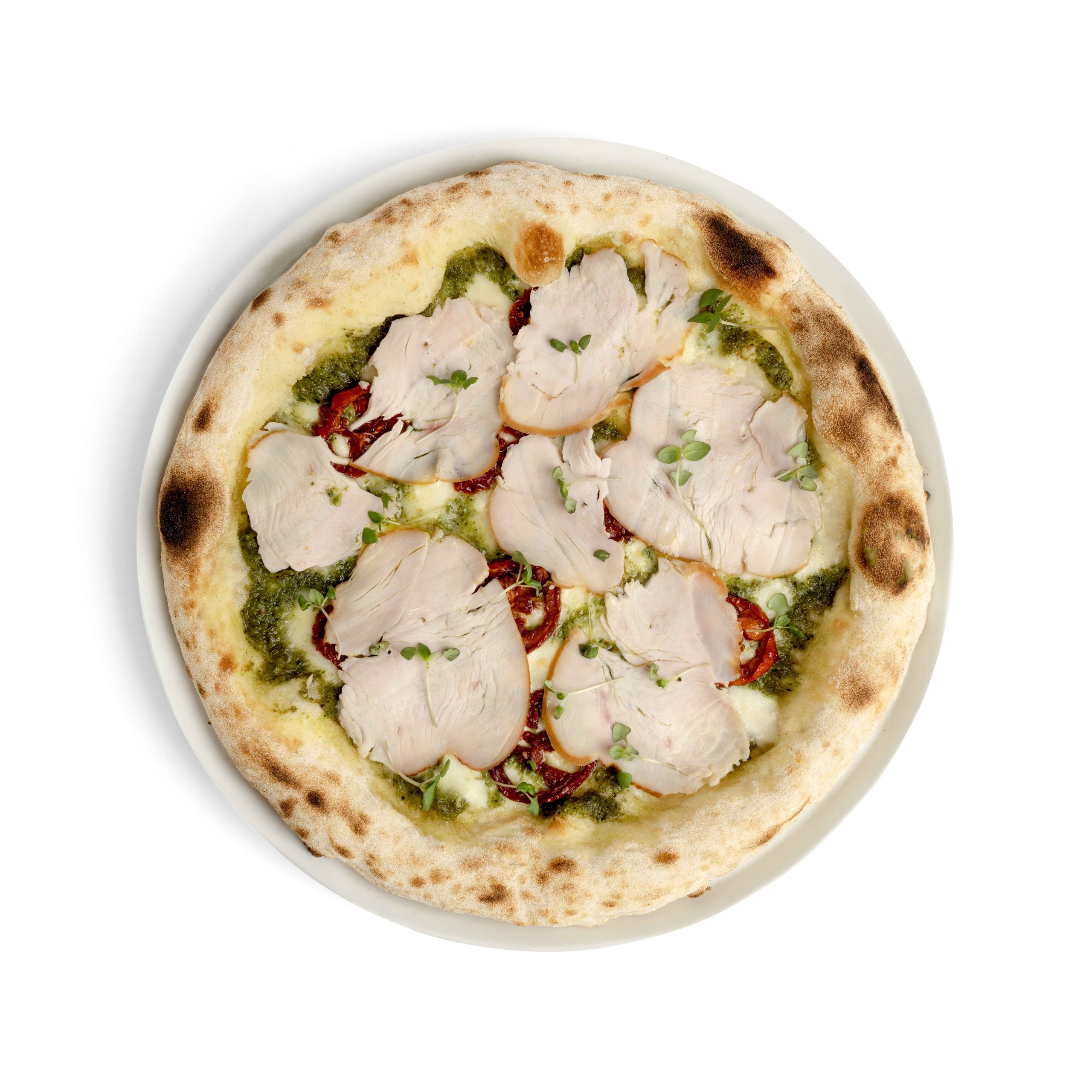 مرغ گریل، سس پستو، گوجه خشک، پنیر پارمژان