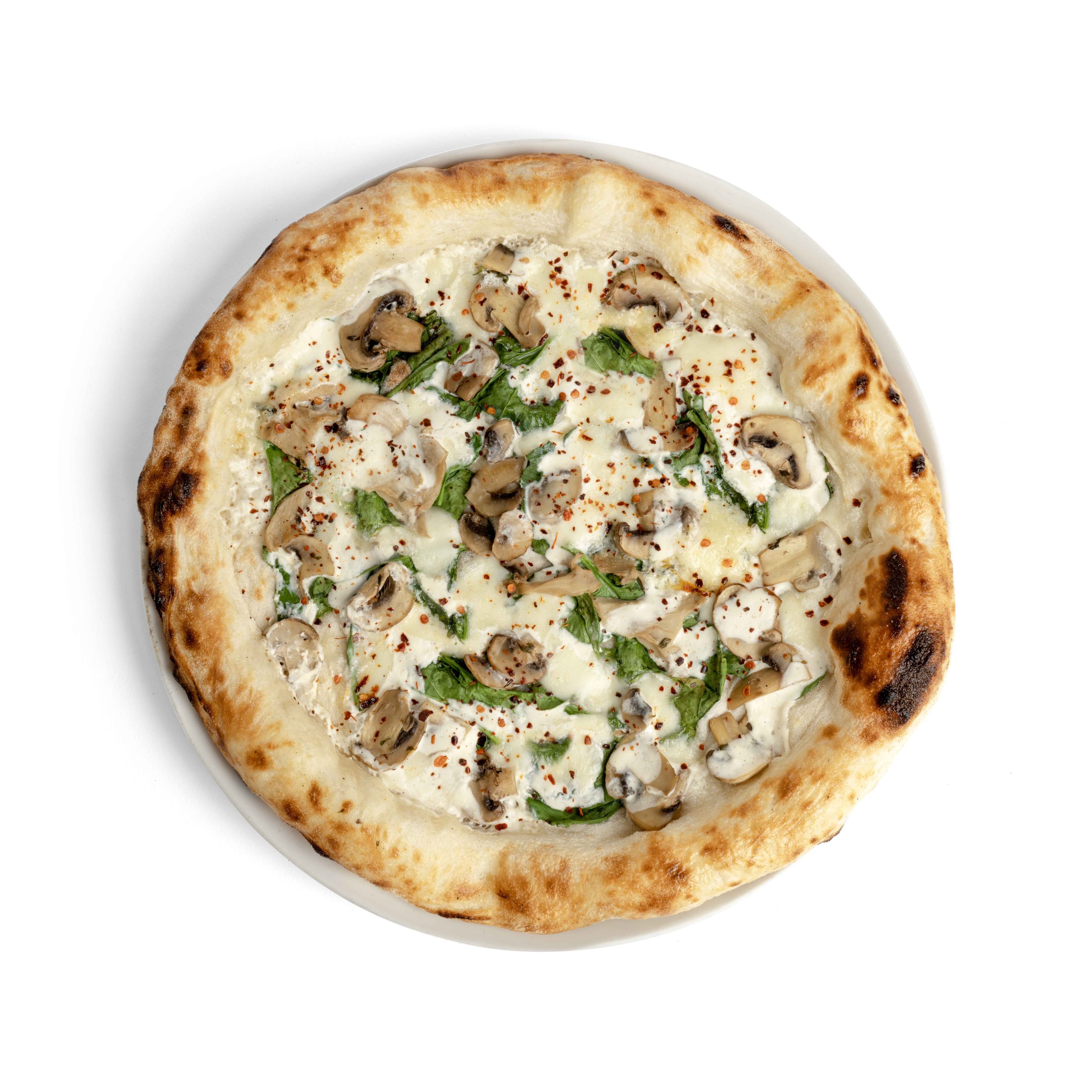پنه، سس مارینارا و خامه، بیبی اسفناج، قارچ، گوجه، پیاز، پنیر پارمژان