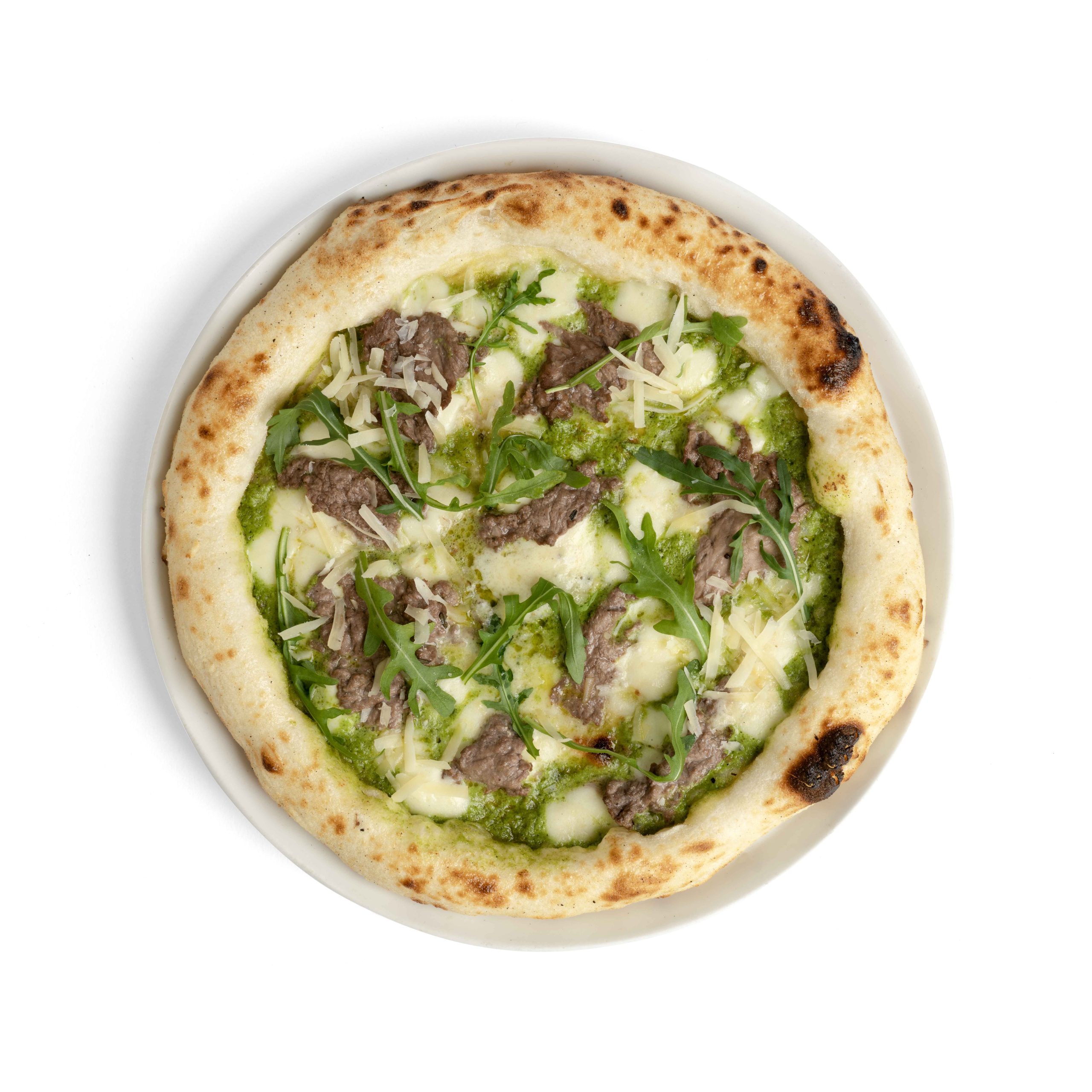 راسته گوساله، سس سیرواسفناج، پنیر موتزارلا، پنیر بلوچیز، پنیر پارمژان، روکولا