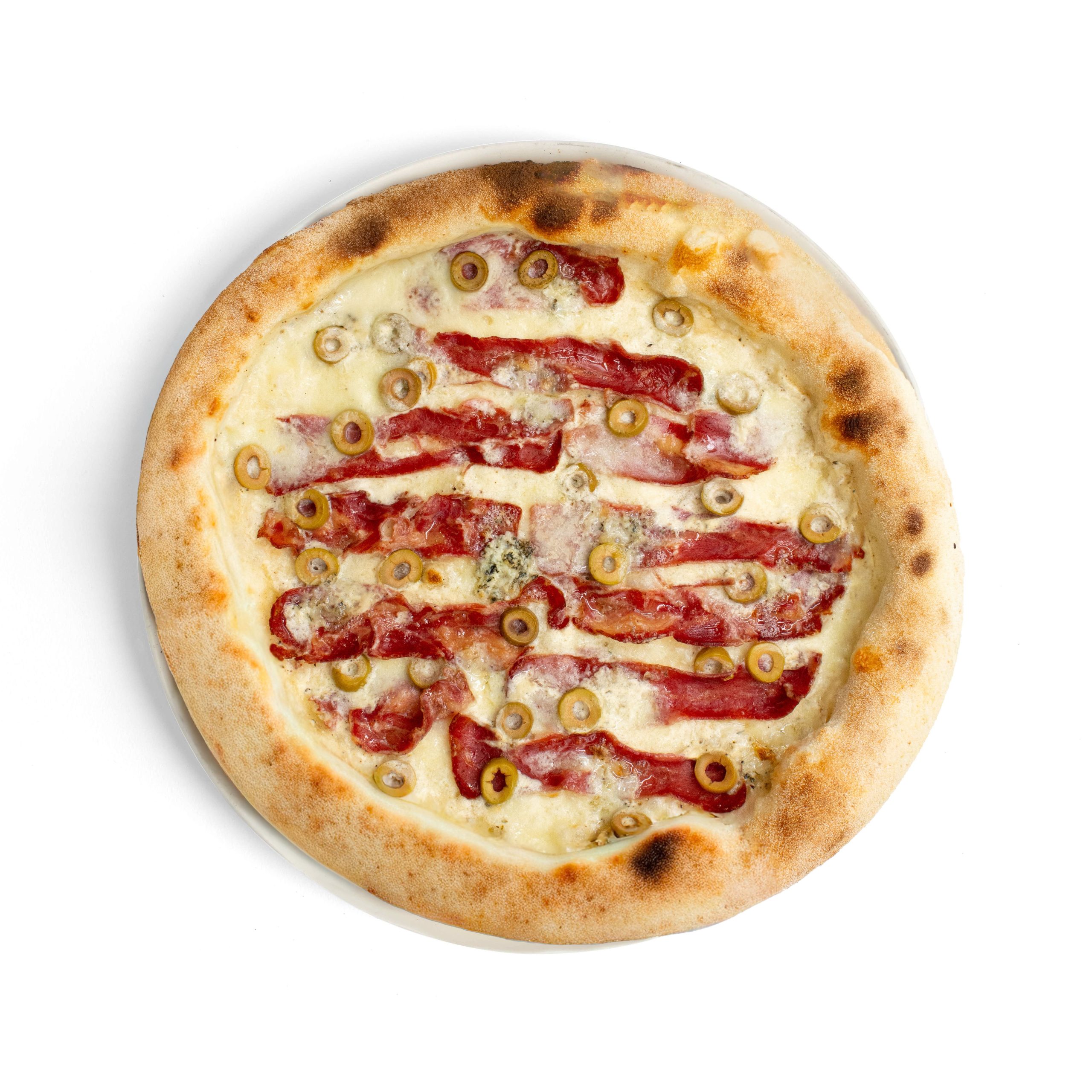 سس خامه‌ای، بیکن، زیتون، پنیر موتزارلا، پنیر بلوچیز